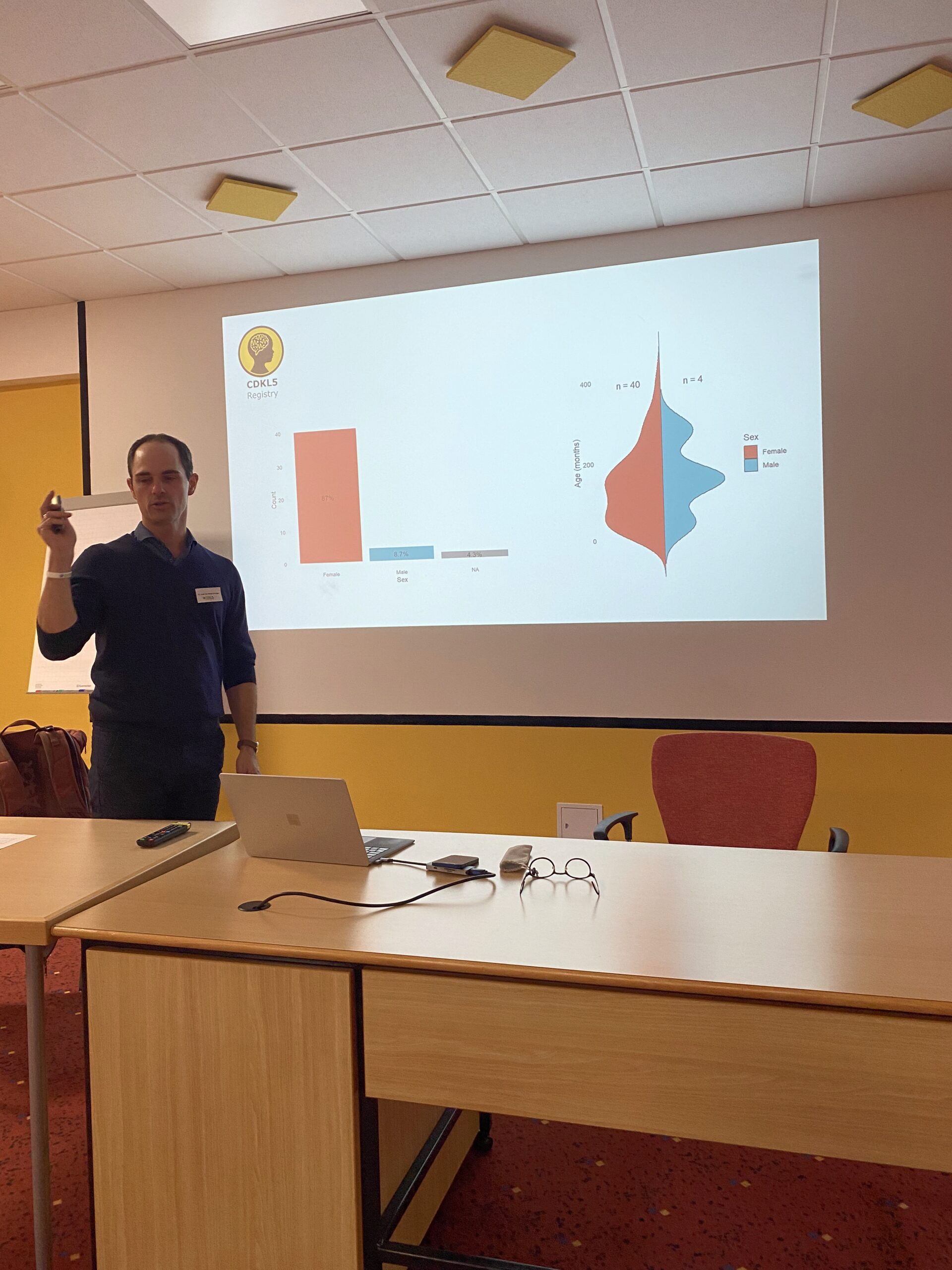 Ein weiterer Vortrag informierte uns über den Fortschritt bei der Erstellung eines deutschen CDKL5-Patientenregisters. Die ist ein Datenbanksystem zur Erfassung von Patienten und der Behandlungsdaten, um z. B. Medizinern eine bessere Grundlage zur Auswahl der Behandlung zu bieten; aber auch, um klinische Studien zu unterstützen. Ein Team an der Universitätsklinik Heidelberg unter der Leitung von Prof. Dr. med. Syrbe arbeitet derzeit an der Umsetzung. Frau Prisca Wille hat uns darüber informiert, dass die Ethik-Kommission bereits zugestimmt hat und es jetzt nur noch um die technische Umsetzung geht.